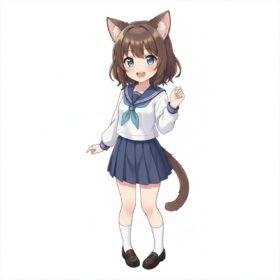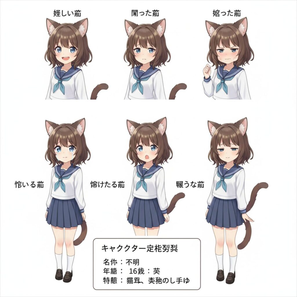 猫耳の女の子、16歳くらい、茶色のショートヘア、