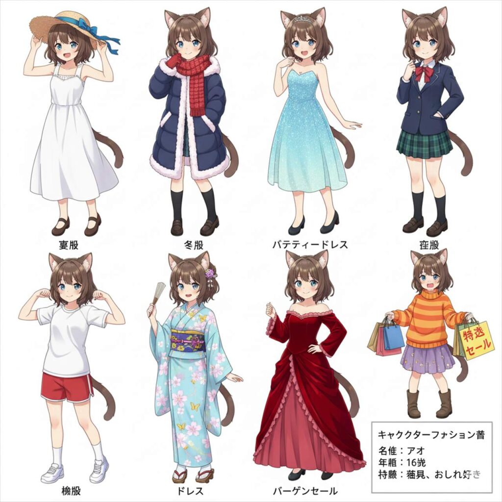 - Q: うまく同じキャラクターにならない時は? A: 最初の基本画像と一緒に「この女の子の○○を変更して」と具体的に指示しましょう。