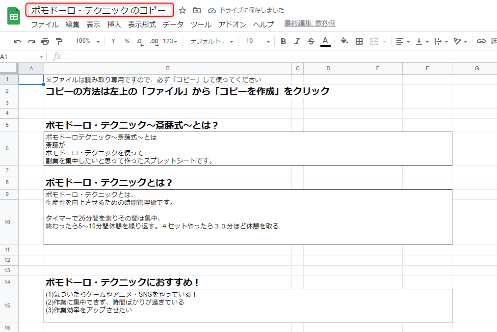 スプレットシートの編集権限がない時、コピーして編集する方法