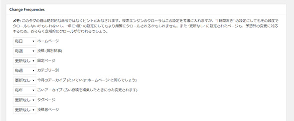 こちらは、グーグルの検索エンジンのクローラーにどのくらいの頻度で更新されるかをお知らせします。