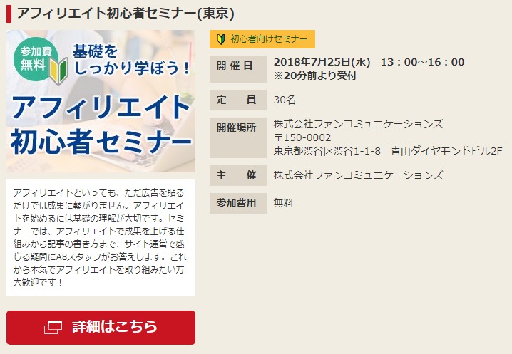 ASPサービスが開催するセミナーの多くは無料が多いです。