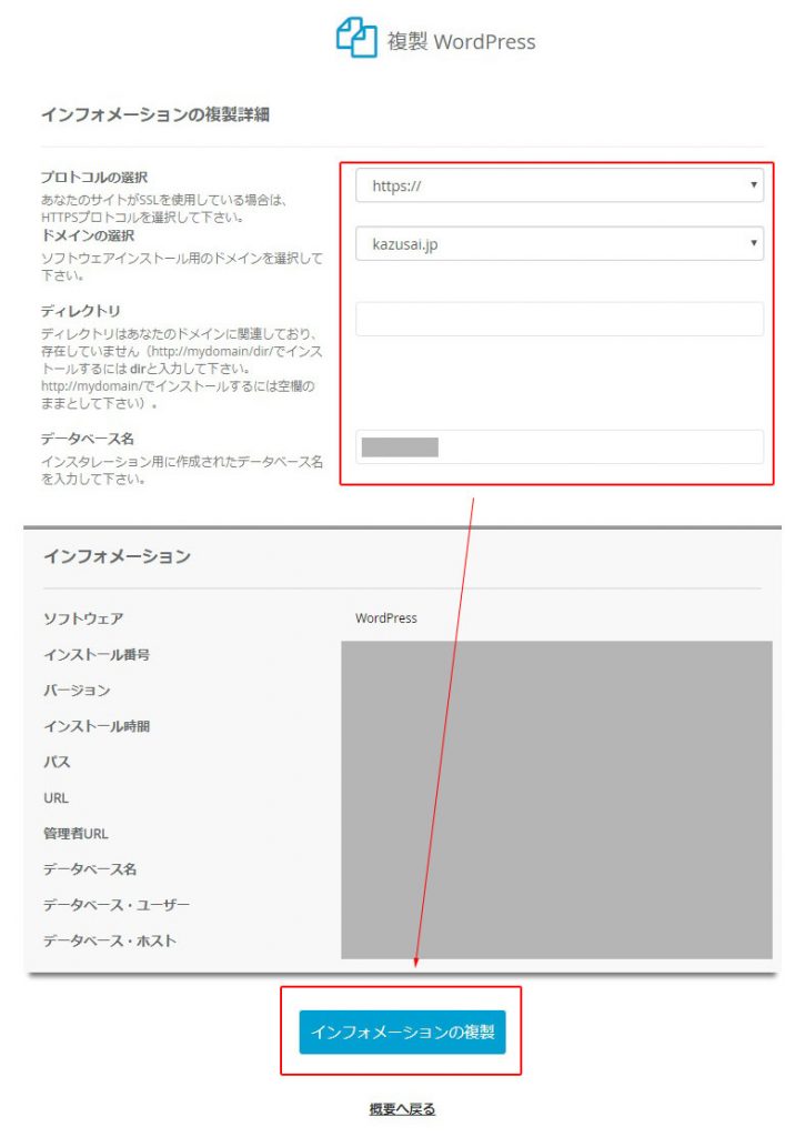 最後に、「インフォメーションの複製」を選択
