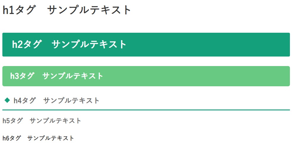 見出しタグは、見出しタグは1~ 6まであり数字が若いほど重要度が上がります。