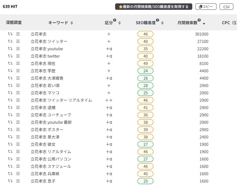 「立花孝志 学歴」「立花孝志 彼女」などのキーワードで記事を書きます。
